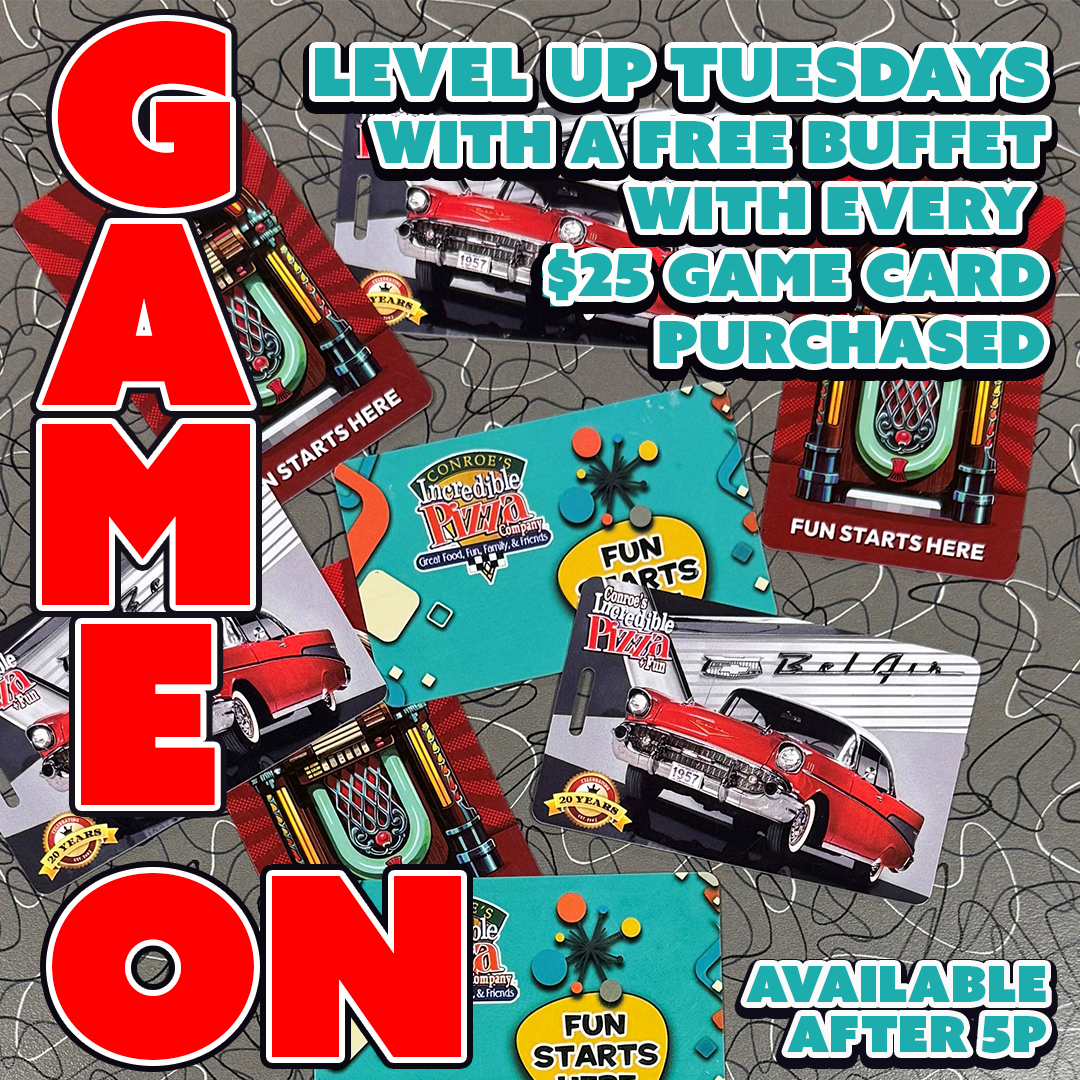 🎮 Join us every Tuesday at 5 PM for an exciting evening! Buy a game card for $25 and enjoy a FREE buffet and drinks! Don’t miss out—bring your friends and have a blast! 🍽️🥳